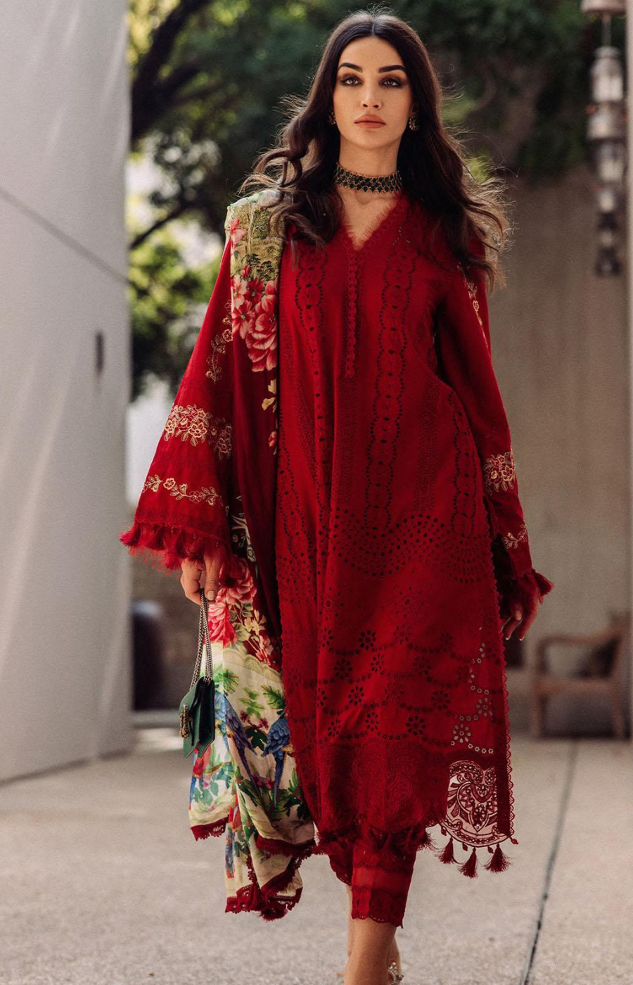 Saira Rizwan | Red Chickankari 3Pc- Lawn